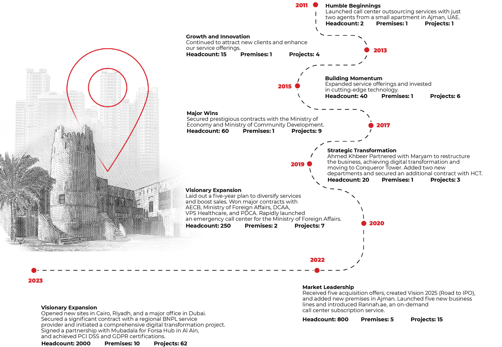 “Beginning as a call center agent. I partnered with Maryam to drive Tafaseel Group Holding’s expansion. our shared vision and embrace of technology empowered us. With a foundation in 3P’s, we continue delivering exceptional service and embracing innovation” — Ahmed Khbeer